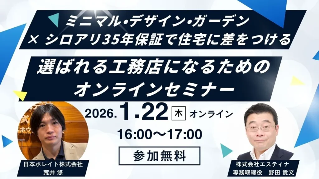 ミニマル・デザイン・ガーデン × シロアリ35年保証で住宅に差をつける 選ばれる工務店になるためのオンライン・セミナー
