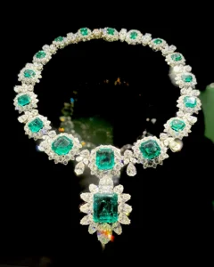 ジュエリーと一緒に、デザイン画も展示してあり、そこに記載されている宝石の重さ(カラット)がビックリする値のものが多くありました。